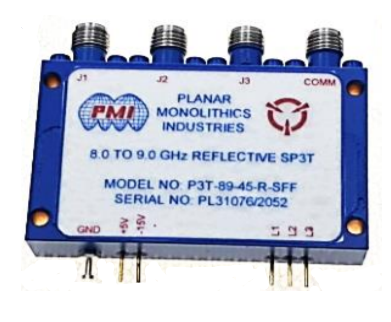 1.0 PMI Model No. P3T-89-45-R-SFF, 8.0 to 9.0 GHz, SP3T Reflective Switch