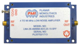 3.0 PMI Model No. LNA-38-4M96M-4D3-25-15-SFF, 4 to 96 MHz, Low Noise Amplifier