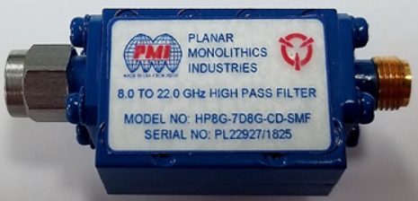 6.0 PMI Model No. HP8G-7D8G-CD-SMF, 8.0 to 22.0 GHz, High Pass Filter